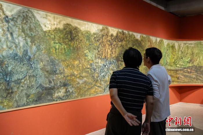 展览中,20米巨幅长卷《万古江山怀古韵》与《锦绣山河》以宏大的尺度和磅礴的气势,展现自然与人文的和谐之美,引得众多观众纷纷驻足观赏。唐承华说,这两幅作品让观者仿佛置身于山水意境之中,领略山河壮丽,体悟文脉悠远。