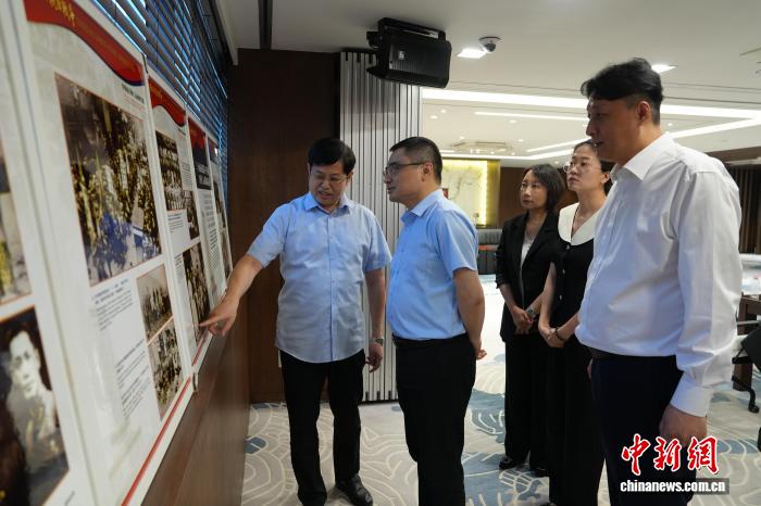 8月15日,“纪念中国人民抗日战争暨世界反法西斯战争胜利80周年”旅韩侨学界座谈会在首尔举行。图为活动嘉宾参观“华侨抗战史”图文展。中新网记者 刘旭 摄