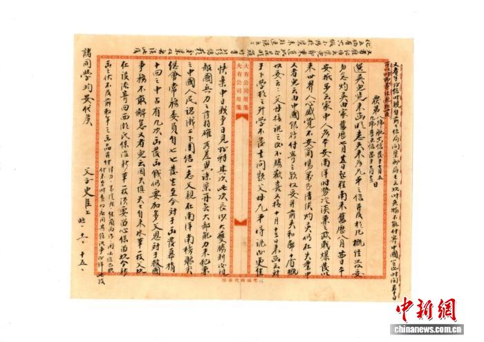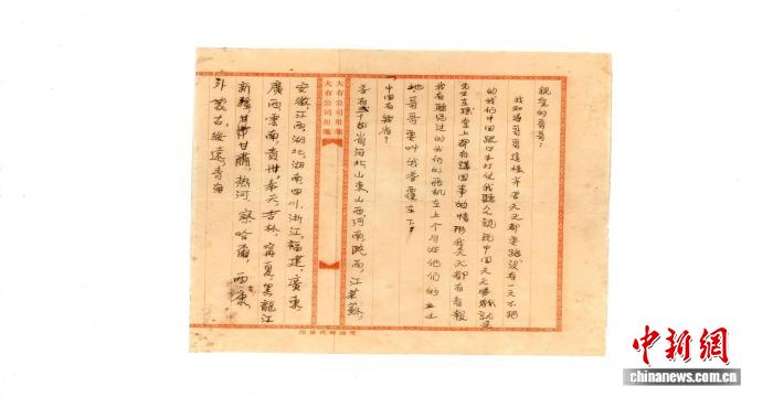 中新网广州8月14日电 (程景伟 王寒)广东省档案馆14日举办“抗战烽火中的家国情怀”推介活动,推介一批馆藏征集的抗战时期侨批档案。