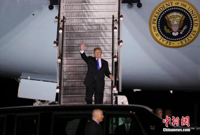 资料图:美国总统特朗普乘坐“空军一号”。 中新社记者 刘震 摄