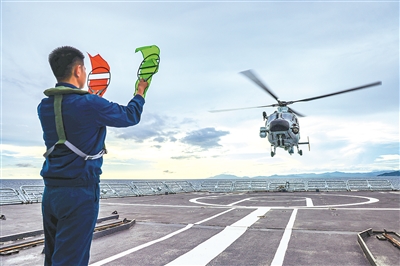 近日,海军某支队开展舰机协同训练 本报特约通讯员 李俊霖摄