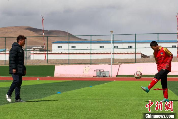 中新社青海玉树4月16日电 题:海拔4550米的绿茵激情:玉树少年用热爱踢出“世界波”