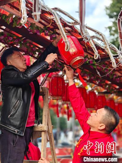 在枫亭镇的另一处,同为手艺人的陈维雄也在检查他制作的蜈蚣灯,并在蜈蚣灯下挂上一个个灯笼。他介绍说,每年枫亭元宵游灯活动的蜈蚣灯都需重新制作,用的材料是农历九月过后的毛竹,经过大火熏、烤等多个步骤,制作时间需要一个多月。