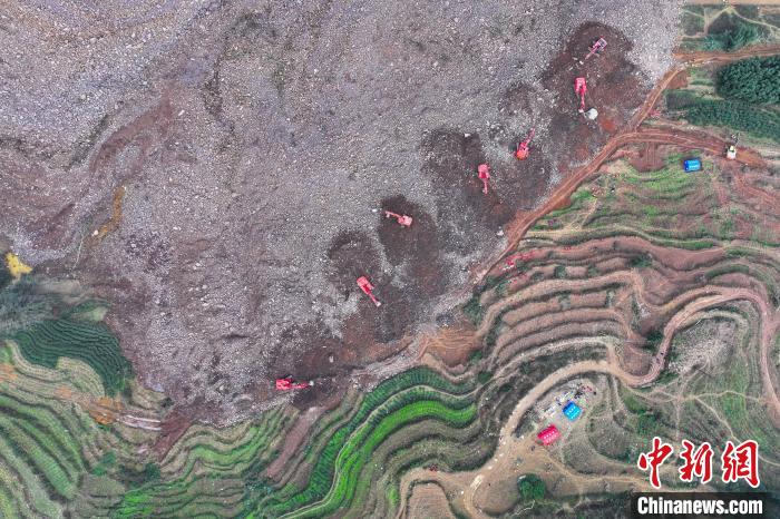 截至11日6时,中国安能救援团队累计翻清滑坡体4.9万方,修筑紧急避险通道700米。在滑坡体一旁的山坡上,中国安能救援指挥员冯伟杰随身携带的两部对讲机响个不停。他把指挥部的最新指令传达给挖掘机操作员,又奋力挥舞着手臂,调度挖掘进程,“我们在民房倒塌区域重点展开搜救,目标是找到失联人员。”冯伟杰说。