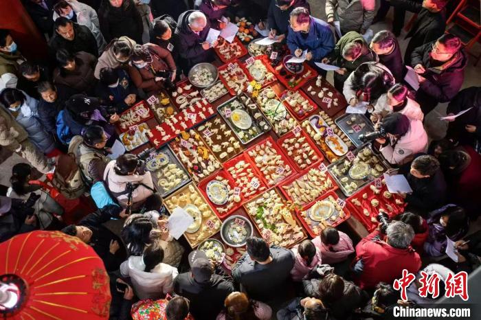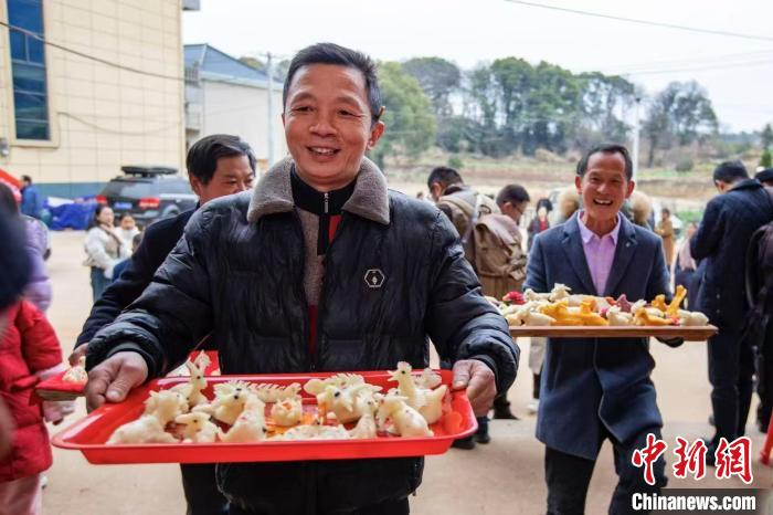 中新网江西都昌2月11日电 (巫发阳 潘雪明 杜春泉)2月10日下午,江西九江市都昌县苏山乡佑元湾村热闹非凡,一场充满传统韵味的赛灯粑闹元宵活动正在如火如荼地进行着,家家户户大展身手,做出牛、兔、蛇等造型各异的灯粑,众人再一起投票评选谁家灯粑做得最好,现场一片欢乐祥和。