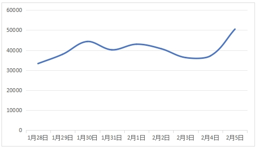 监测期间,“文旅出行”类负面信息共201,770条,占吐槽类信息的13.90%,日均2.5万条,2月2日、5日出现两个高峰。从大年初二开始消费者纷纷外出游玩,票务问题、游客滞留等问题影响了消费者的出行体验。