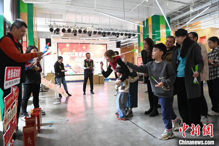 游园活动在位于南宁高新区创客城内的邕台青年创业服务指导中心举办,吸引了50多名台商、台胞、陆配参加。活动现场挂着福字、灯笼等装饰,浓浓的春节喜庆氛围扑面而来,设置了灯笼DIY、猜灯谜、投壶、抛圈等多个游园摊位,还有气球接龙等考验团队协作的游戏比赛,每个摊位前排起长队、争相体验,掌声、欢呼声不断,玩得不亦乐乎,让在邕台商台胞度过了一场欢乐而接地气的节日文化盛宴。