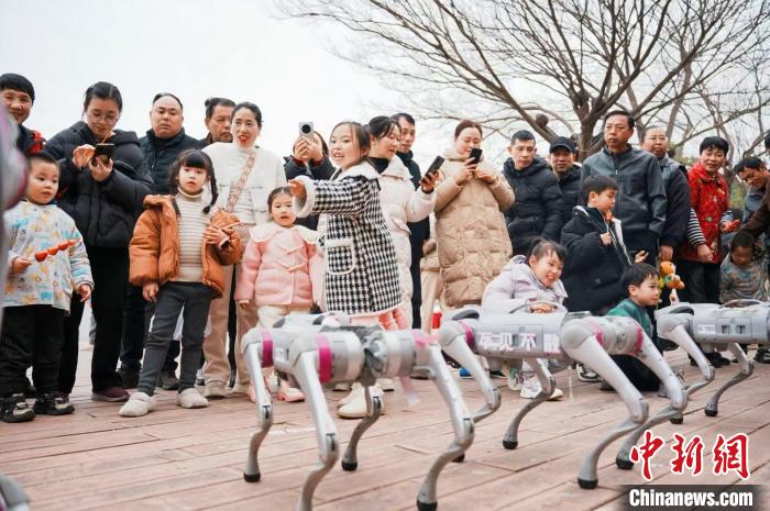 中新网杭州2月12日电(林波)踩着高跷的孙悟空腾云驾雾般穿梭在人群之中,秀才艺的机器狗摇着尾巴与游客嬉戏互动,一盏盏花灯巧妙融入LED灯光技术和智能控制系统……在浙江的元宵节里,文化味与科技味交织融合,成了节日的主打色调。