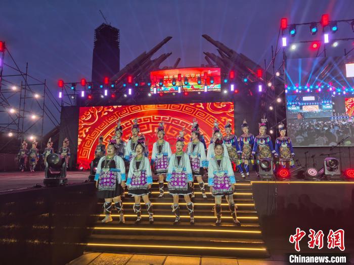 5月1日晚,新疆与贵州的民族民间歌舞巡游率先登场,点燃了现场观众的热情。新疆艺人们身着色彩斑斓的服饰,头戴精美的头饰,旋转、跳跃间尽显西域风情,为这场“文化盛宴”来开帷幕。