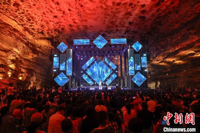 中新网贵州绥阳5月2日电 (记者 瞿宏伦)1日,“洞听天籁·漫游地心”2025多彩贵州溶洞音乐周开场秀在世界最大的天青石洞穴——贵州省遵义市绥阳县双河洞支洞“杉林洞”举行。